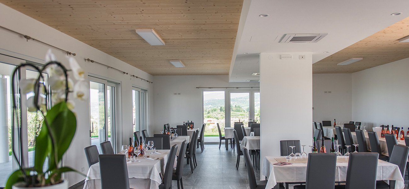 La sala interna si distingue per il suo design contemporaneo e minimale. Caratterizzata da ampie vetrate a tutta altezza, l’ambiente è inondato di luce naturale, creando un continuum visivo tra il comfort degli interni e la natura circostante.